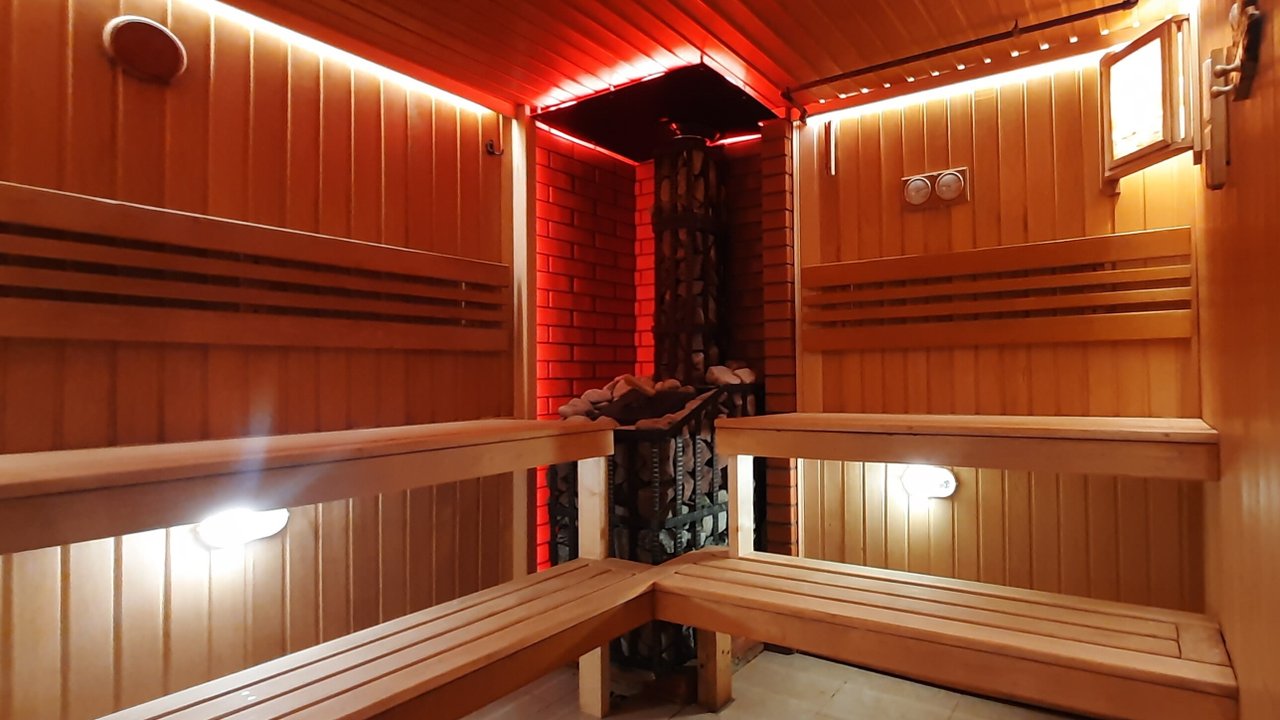 Сауна горячая, комфортная, бассейн хороший, понравились зал и музыка. При недавнем визите арендовали русскую баню на 2 дня подряд: в первый отдыхали 2 часа, а на следующий 3 часа. В основном пользовались бассейном, потому что любим купаться. Дополнительно приобретали тапочки и еду из холодильника, она вкусная! Впечатления от посещения остались хорошие!